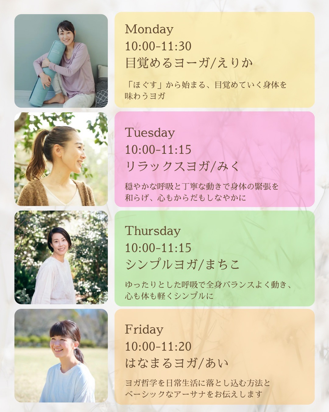 YOGA スケジュール・ご予約
